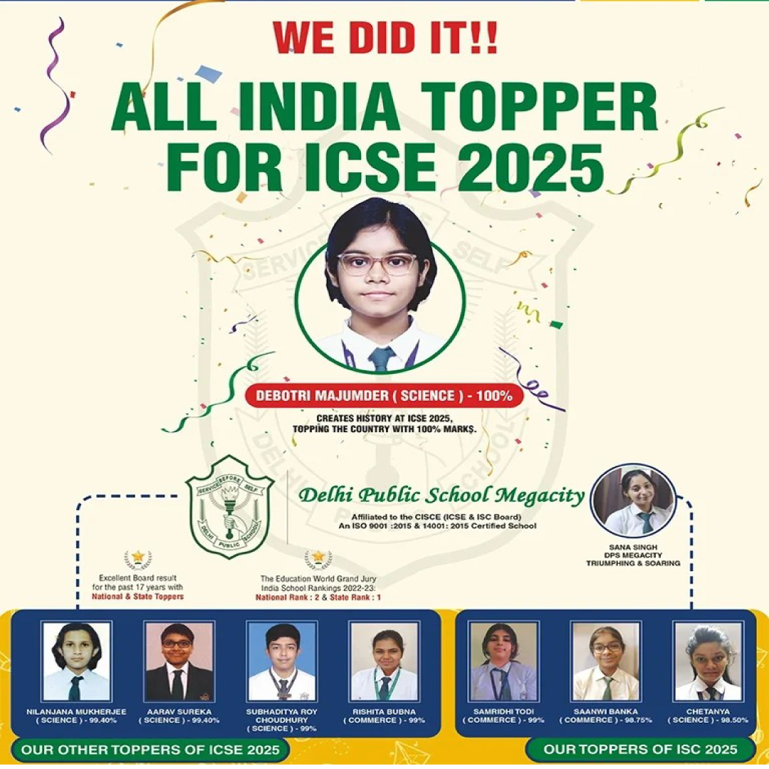 Read MoreDear Parents/Guardians, It is with immense joy, boundless pride, and heartfelt gratitude that we share this momentous news with our beloved DPS Megacity family. At the prestigious Times School Survey, West Bengal 2025, conducted by Bennett & Coleman, The Times of India, Delhi Public School Megacity, Kolkata has emerged as a beacon of excellence, securing: […]
