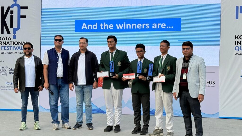 Devayudh Das, Iraj Singh, and Riddhiman Datta have secured the First Runner-up Position amongst 27 schools in prestigious KIQF quiz 2026.