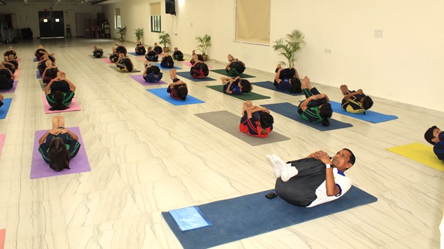 "Breath, Stretch, Balance" To promote spiritual and global unity, students practiced the art of yoga and shared pursuits of wellness, mental health well-being and personal growth.